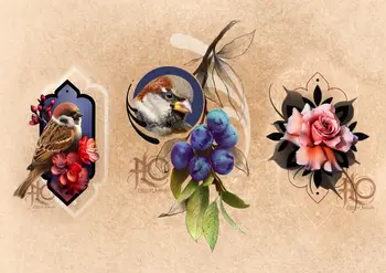 СВОБОДНЫЕ ЭСКИЗЫ ТАТУ С ВОРОБЬЯМИ, ЦВЕТАМИ И ГОЛУБИКОЙ