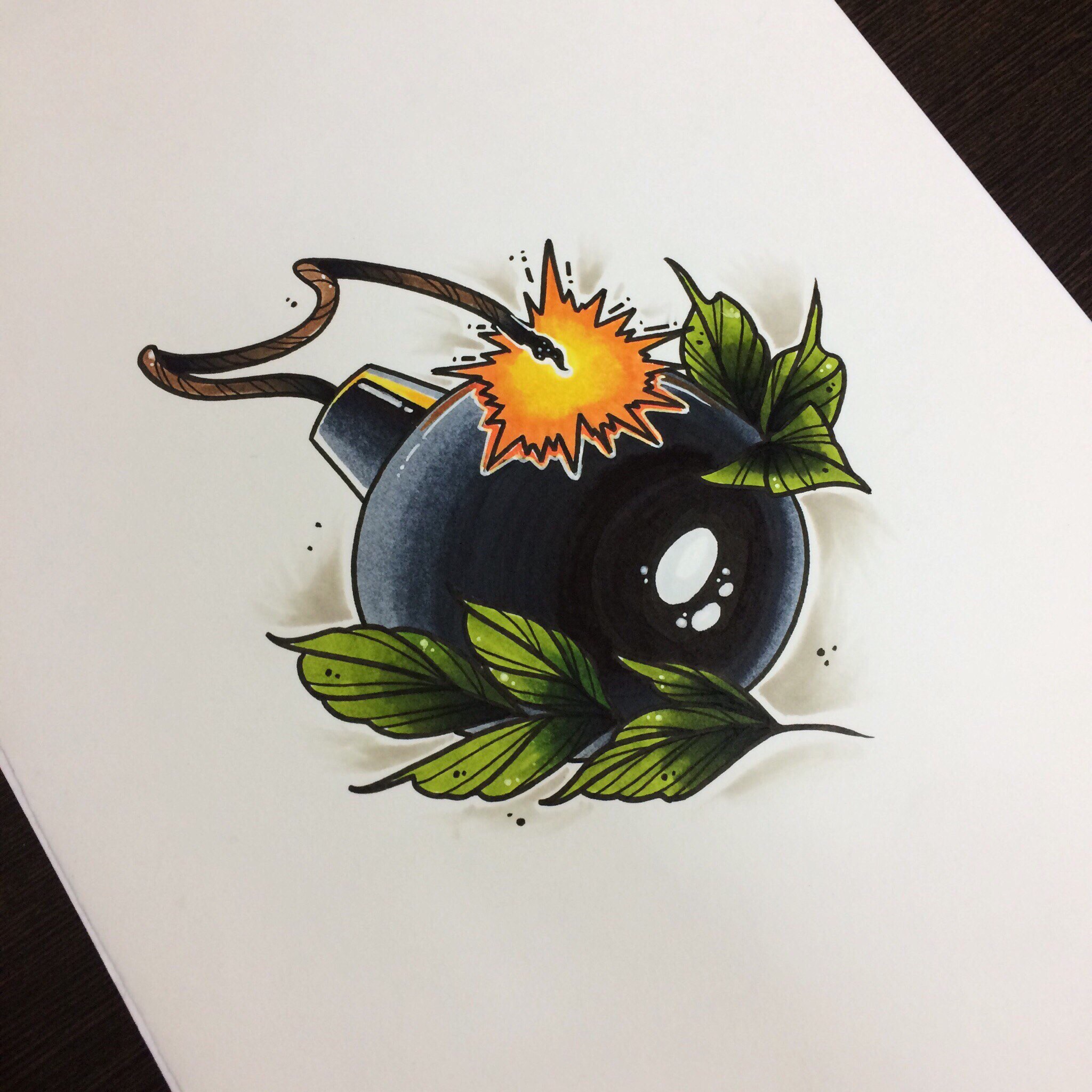 Свободный эскиз тату с бомбочкой