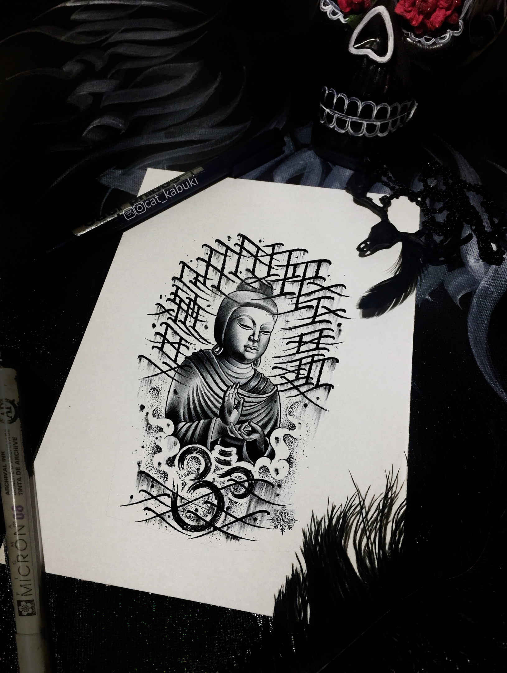 Свободный эскиз тату с Буддой (Анастасия Юсупова)