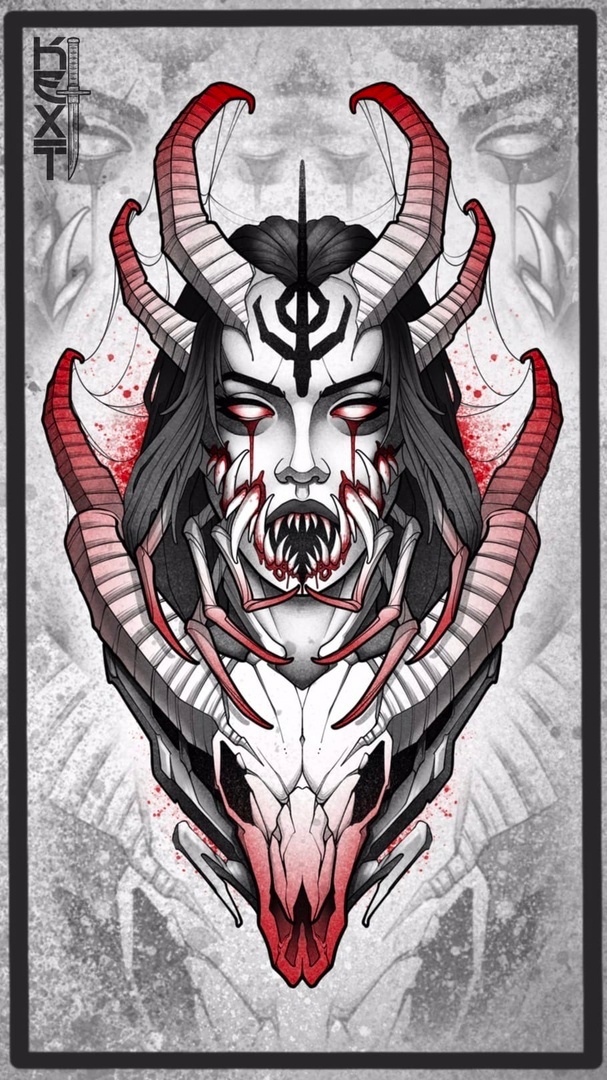 СВОБОДНЫЙ ЭСКИЗ ТАТУ С ЧЕРЕПОМ И ДЕМОНОМ
