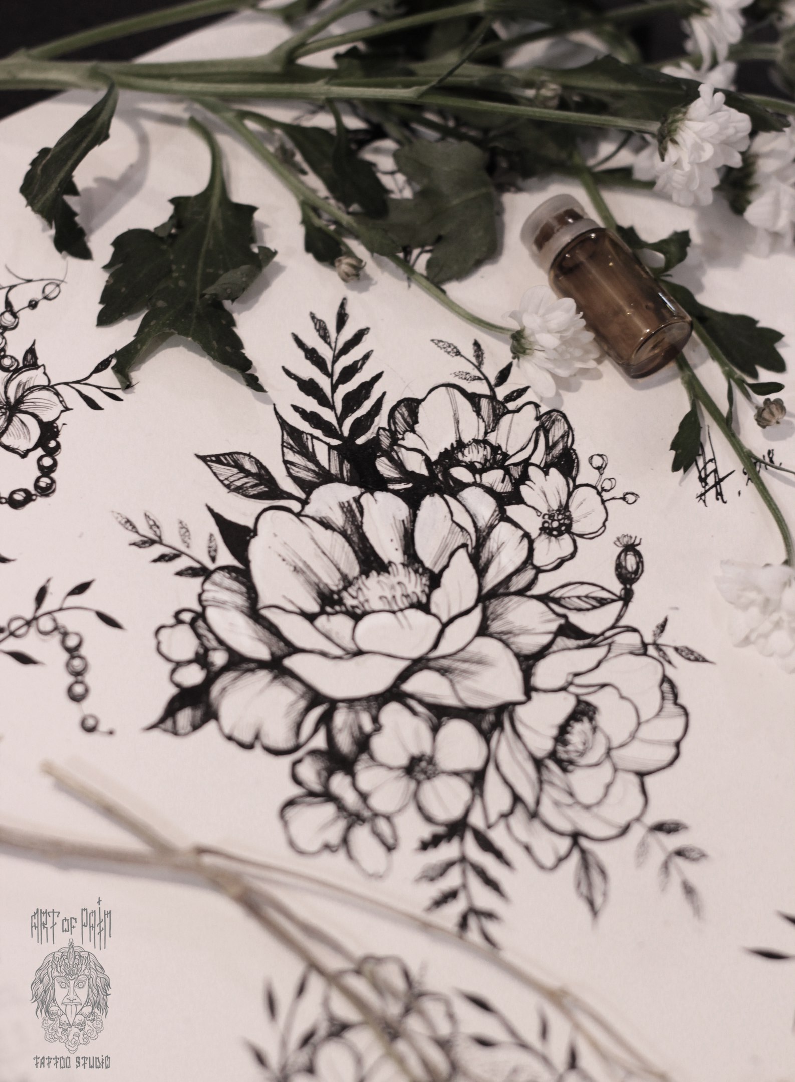 Свободный эскиз тату с цветами 3 (Юрий Хандрыкин)