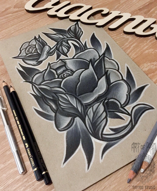 Свободный эскиз тату с цветком - вариант 14 (Юрий Хандрыкин)