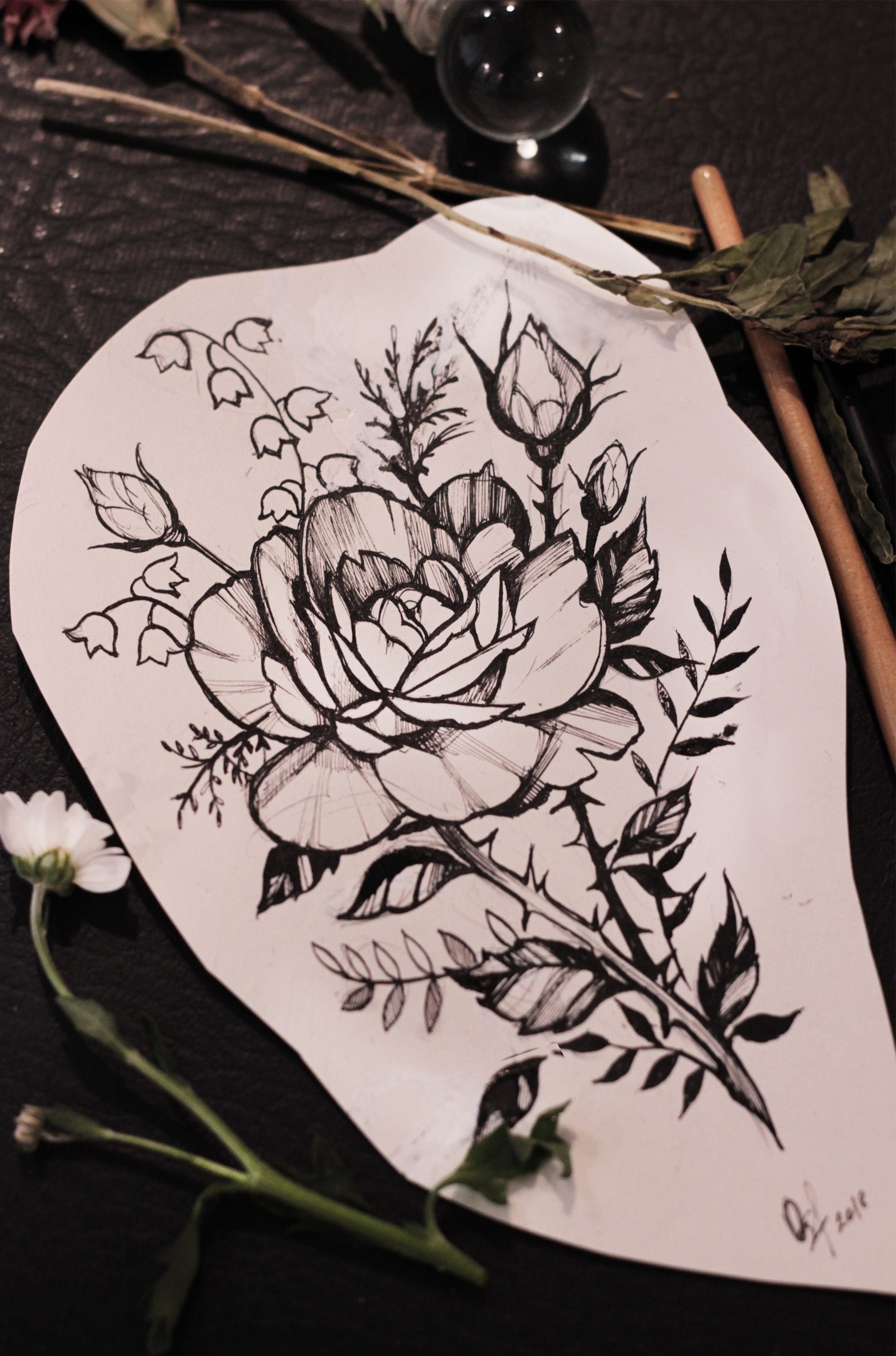 Свободный эскиз тату с цветком - вариант 9