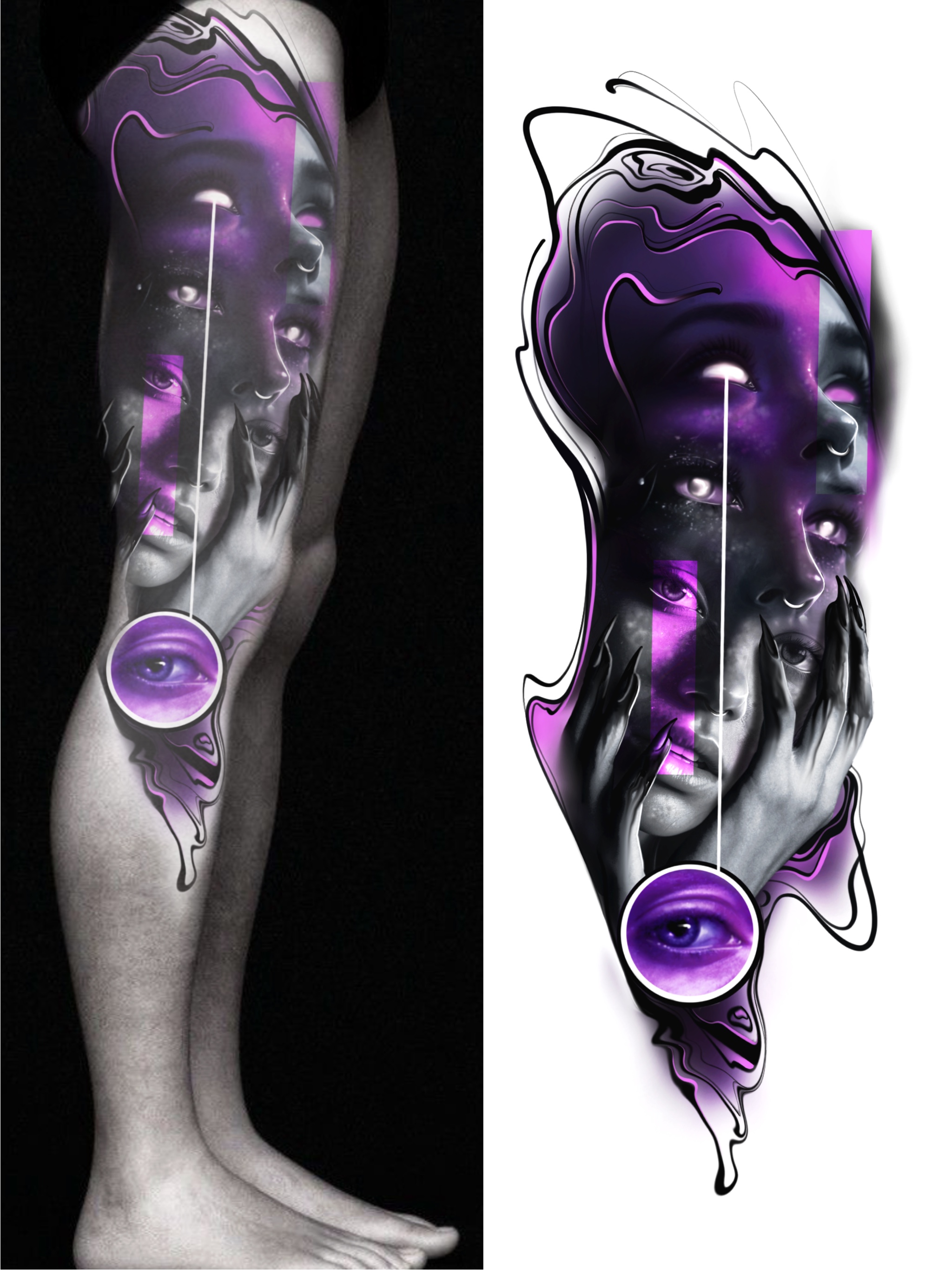 Свободный эскиз тату с девушкой и оком (Дмитрий Шейб)