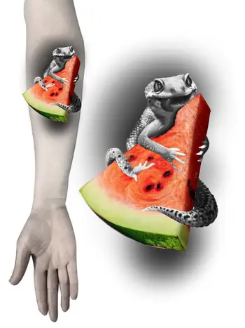 СВОБОДНЫЙ ЭСКИЗ ТАТУ С ЭУБЛЕФАРОМ И АРБУЗОМ