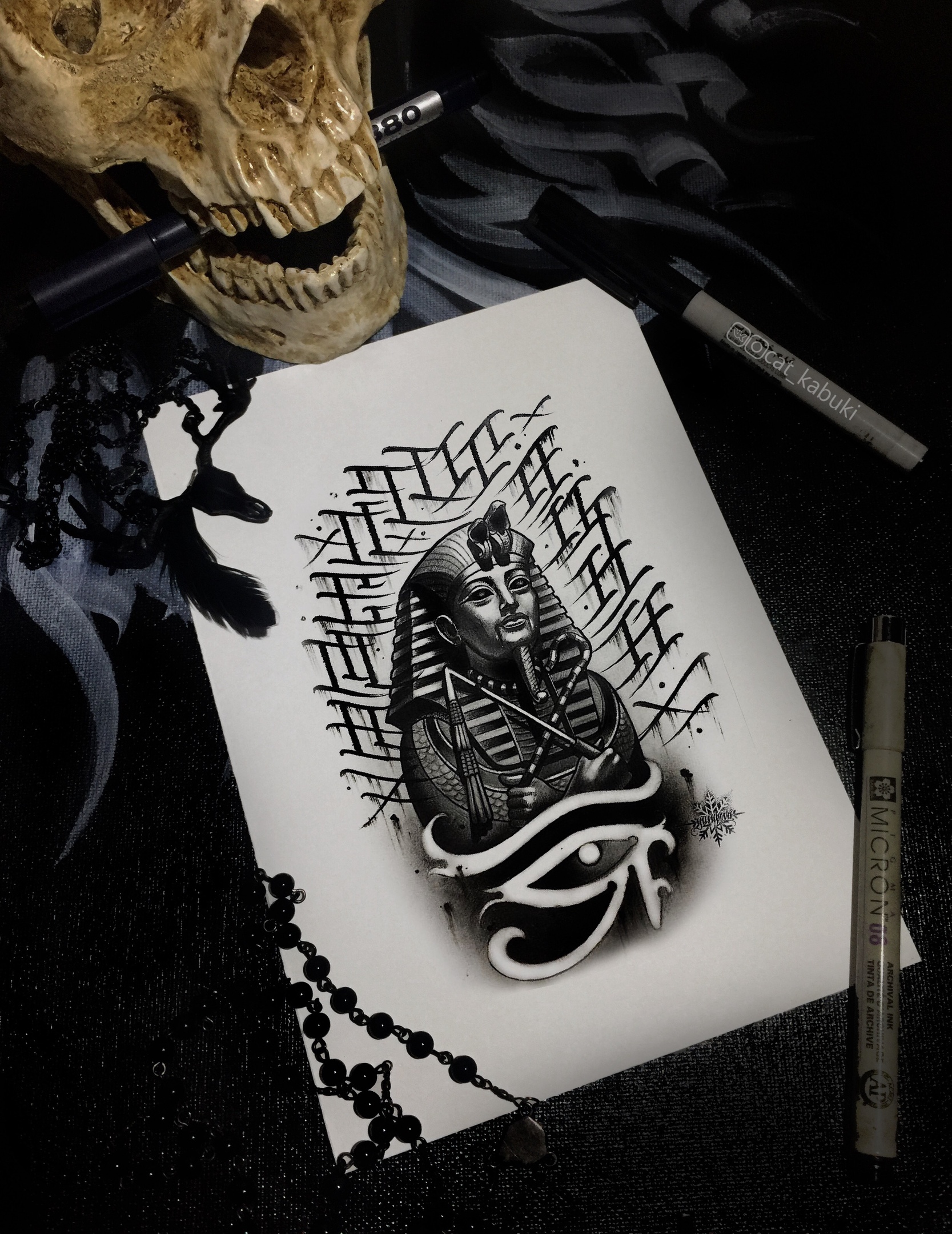 Свободный эскиз тату с фараоном (Анастасия Юсупова)