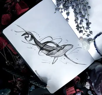 Свободный эскиз тату с китом (Мария Котова)