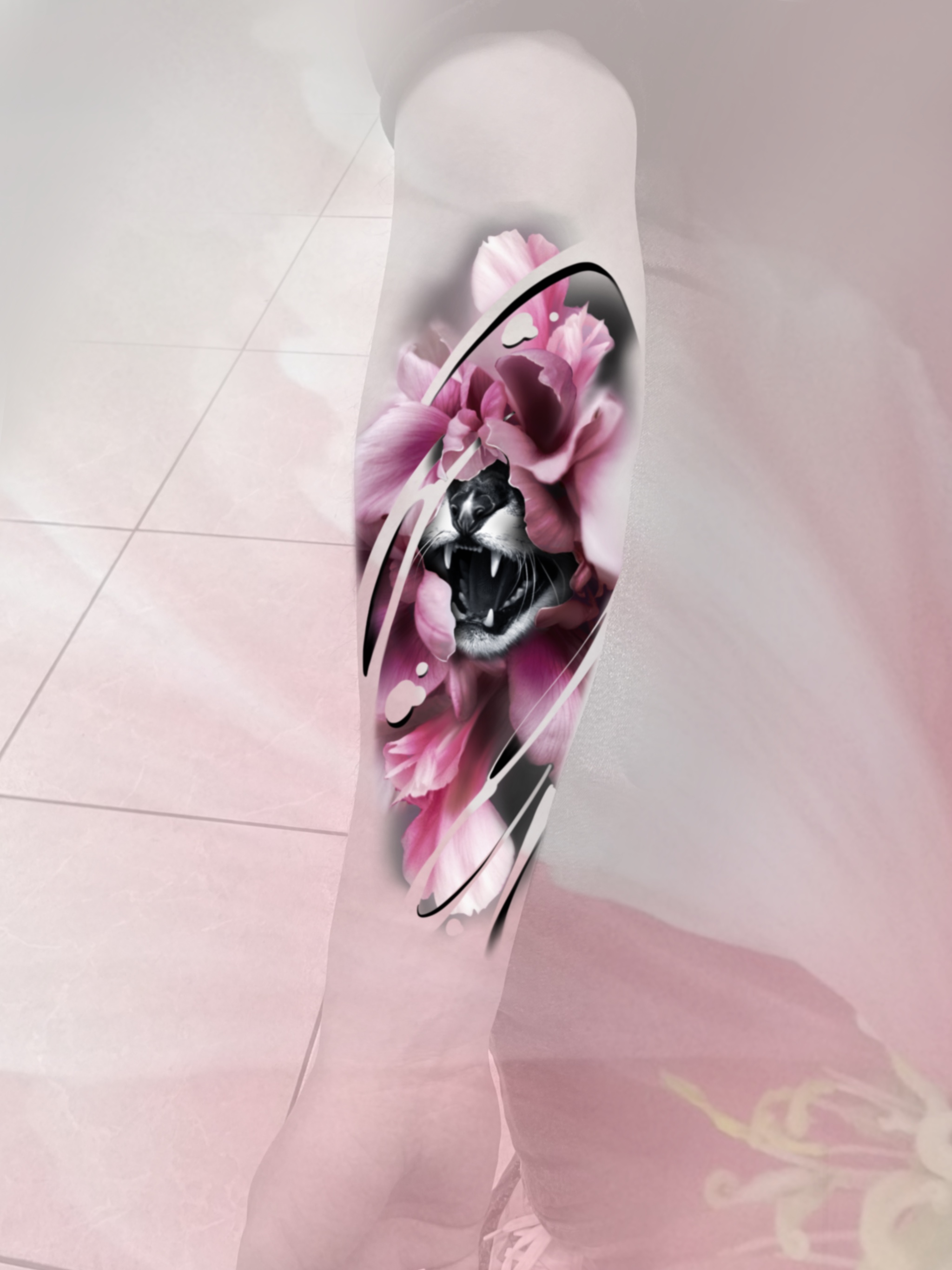 СВОБОДНЫЙ ЭСКИЗ ТАТУ С КОТИКОМ И ЦВЕТКОМ