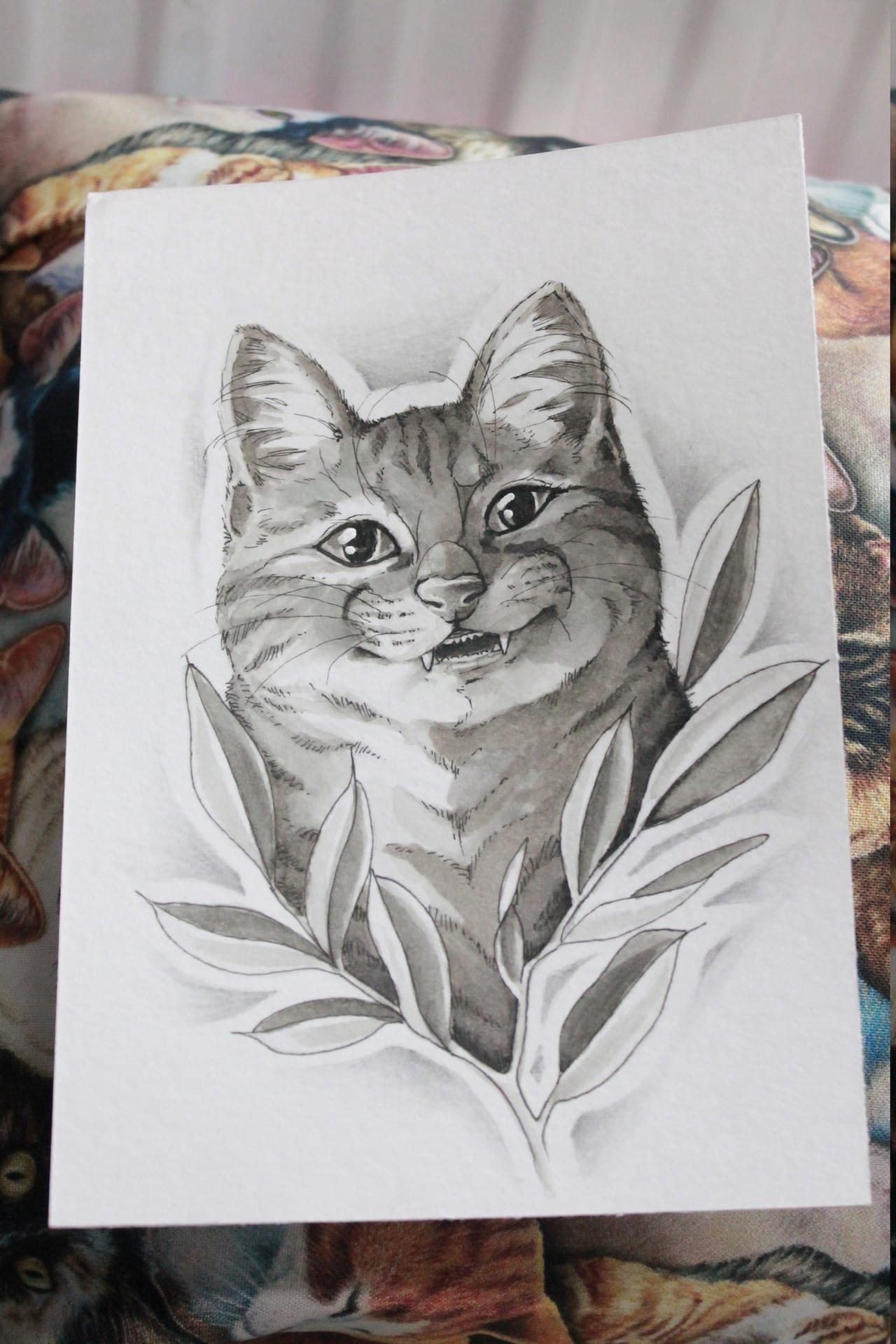 Свободный эскиз тату с котом - вариант 8