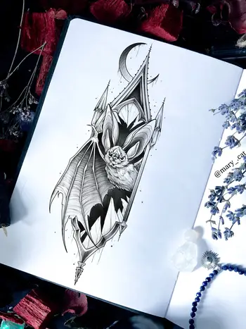 Свободный эскиз тату с летучей мышью (Мария Котова)