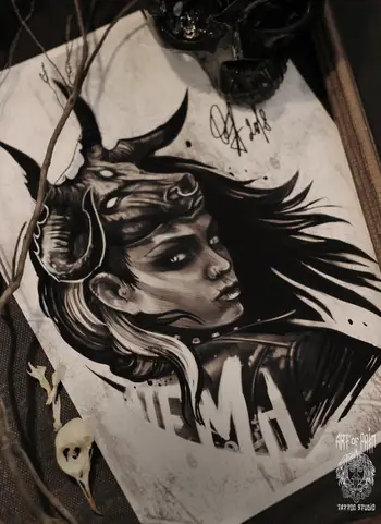 Свободный эскиз тату с лицом девушки