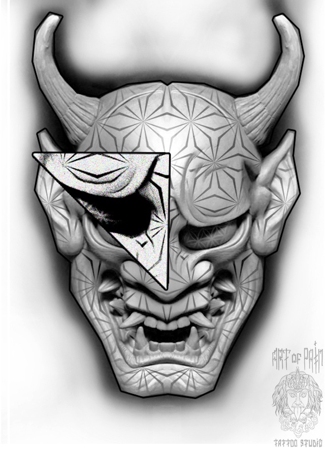 СВОБОДНЫЙ ЭСКИЗ ТАТУ С МАСКОЙ ХАННЯ - ВАРИАНТ 2