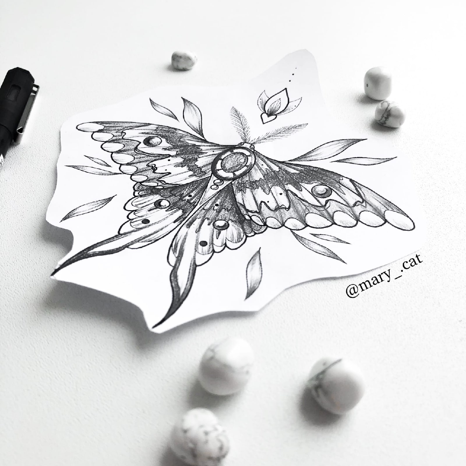 Свободный эскиз тату с мотылём 1