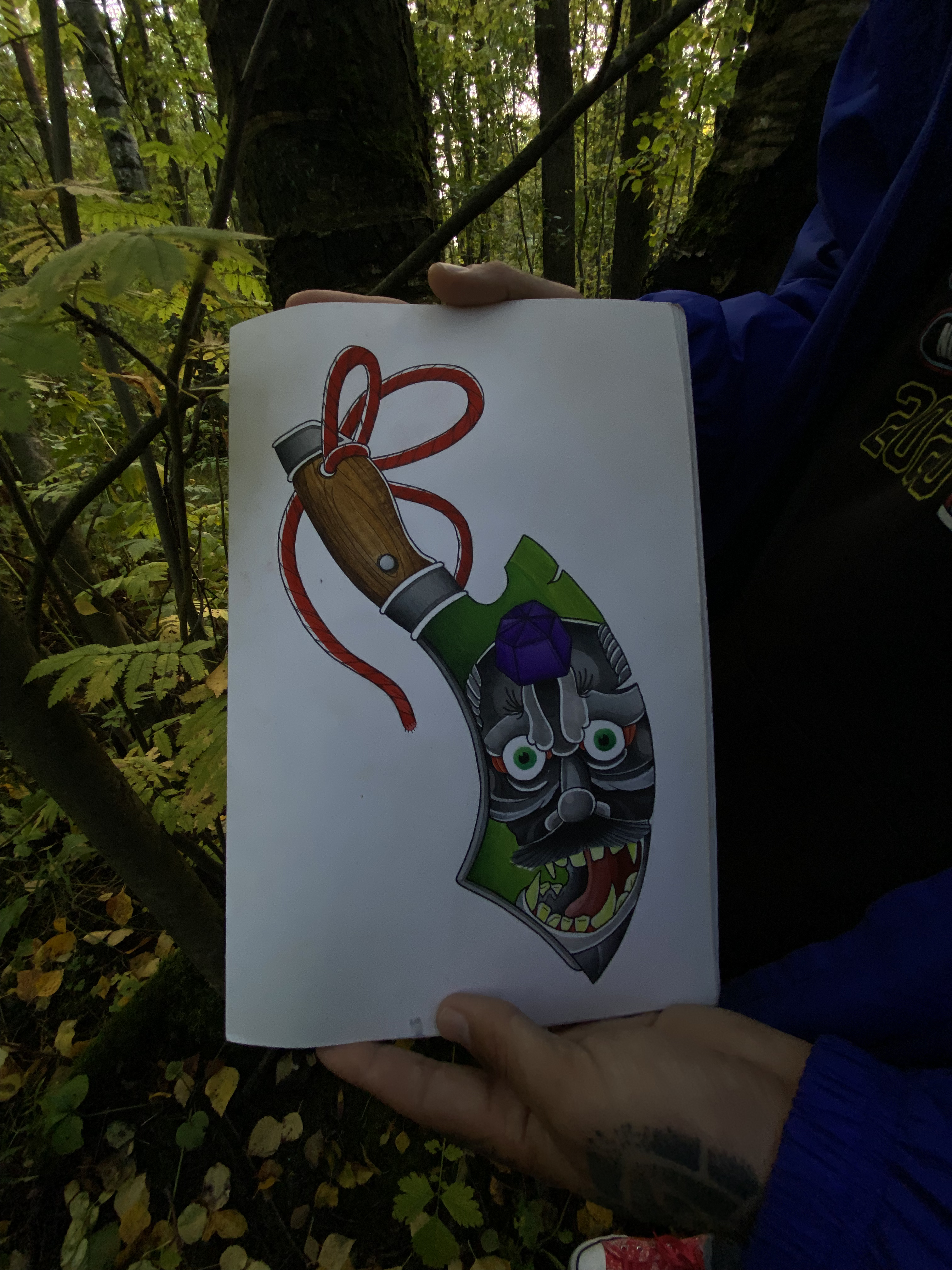 Свободный эскиз тату с ножом