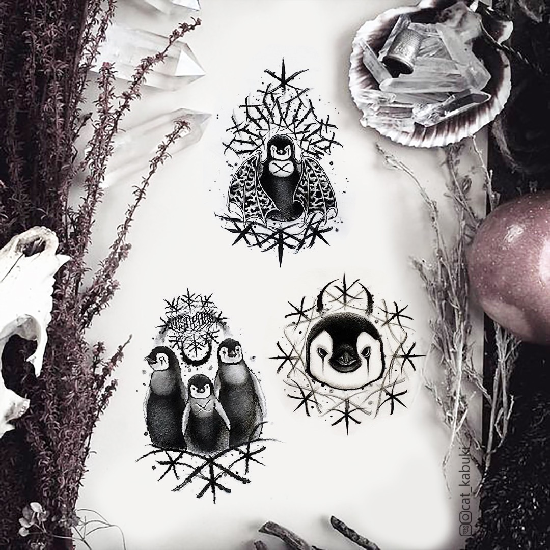Свободный эскиз тату с пингвином - вариант 2 (Анастасия Юсупова)