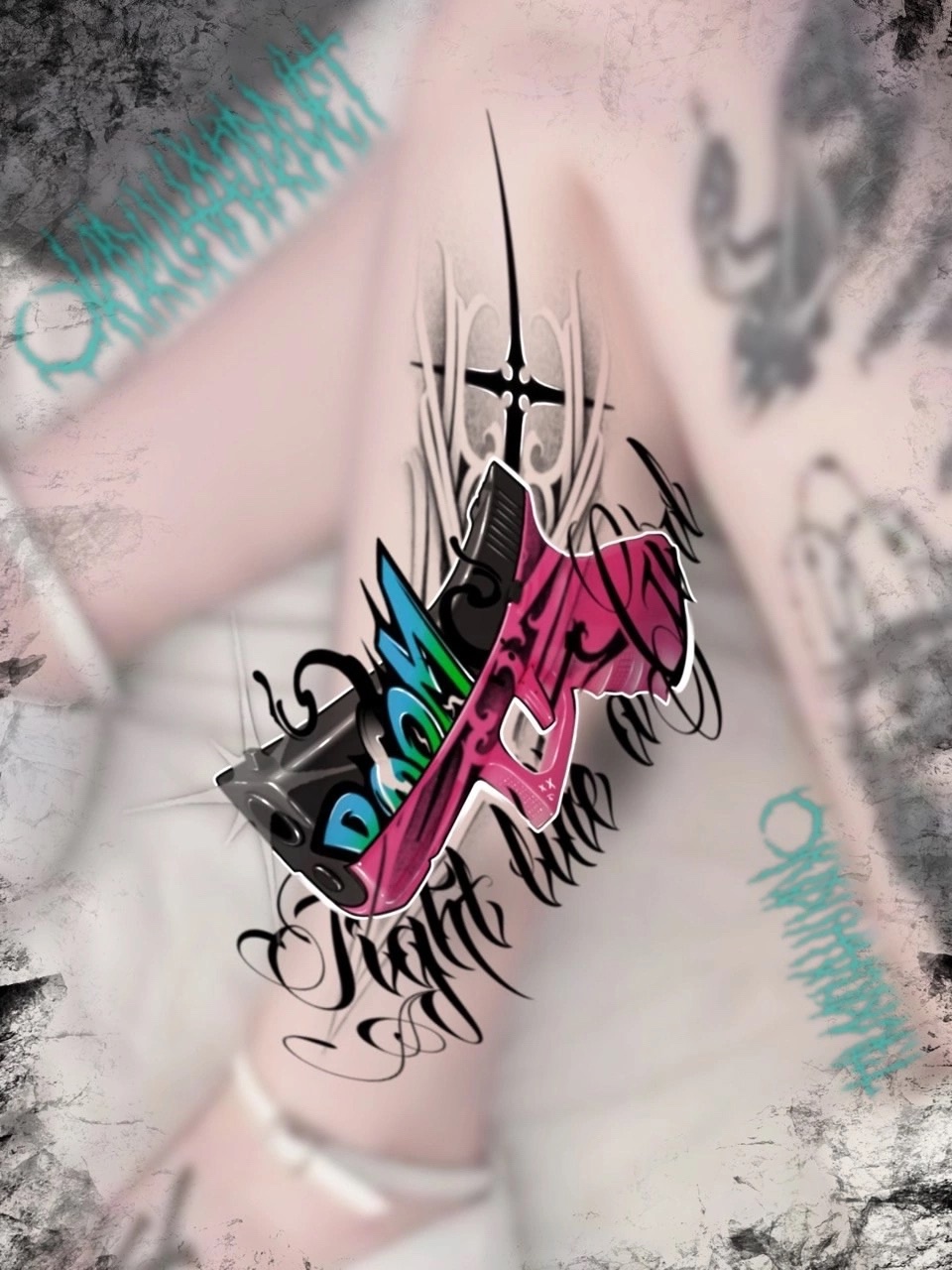 СВОБОДНЫЙ ЭСКИЗ ТАТУ С ПИСТОЛЕТОМ