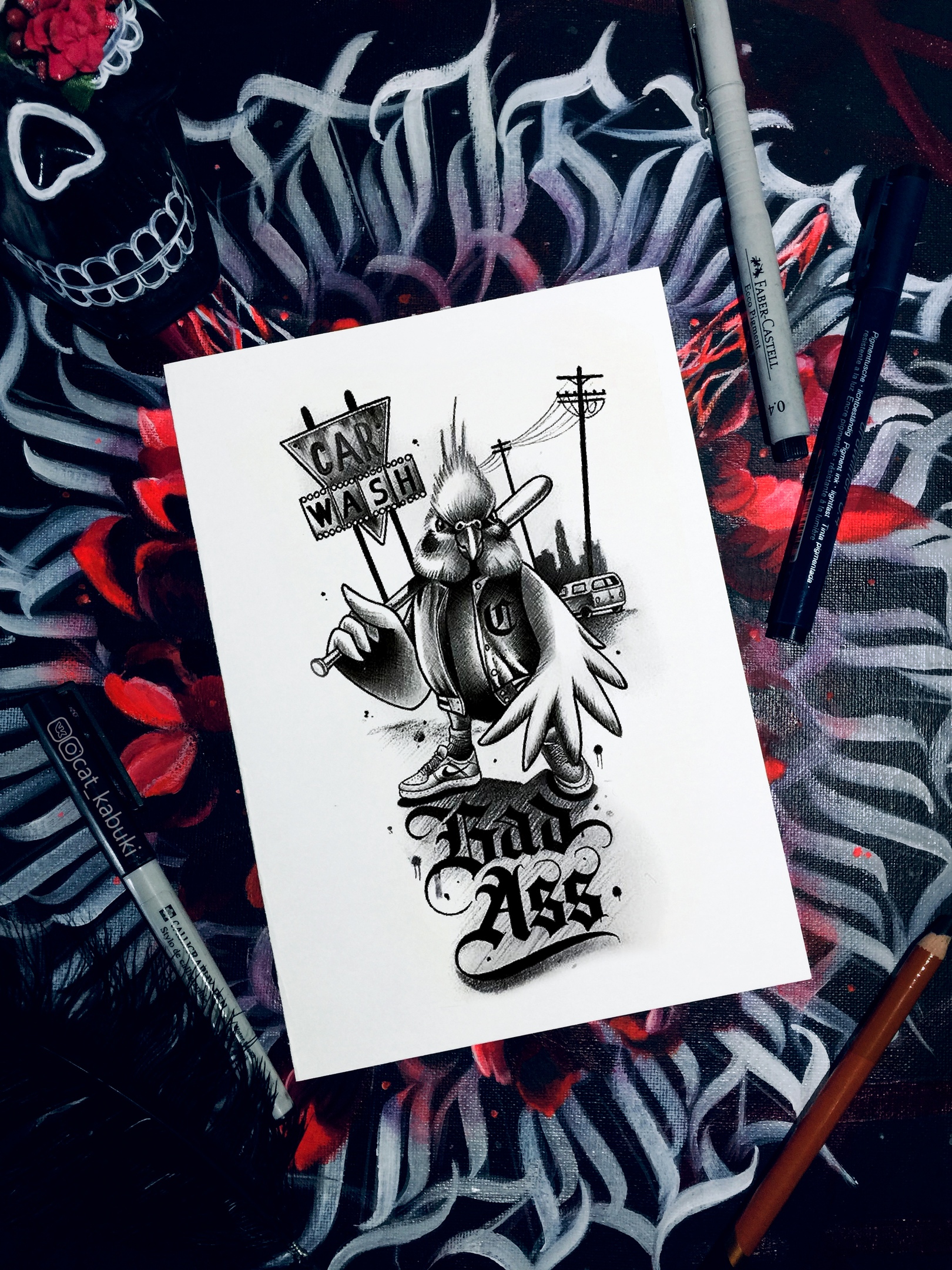Свободный эскиз тату с птицей - вариант 6 (Анастасия Юсупова)