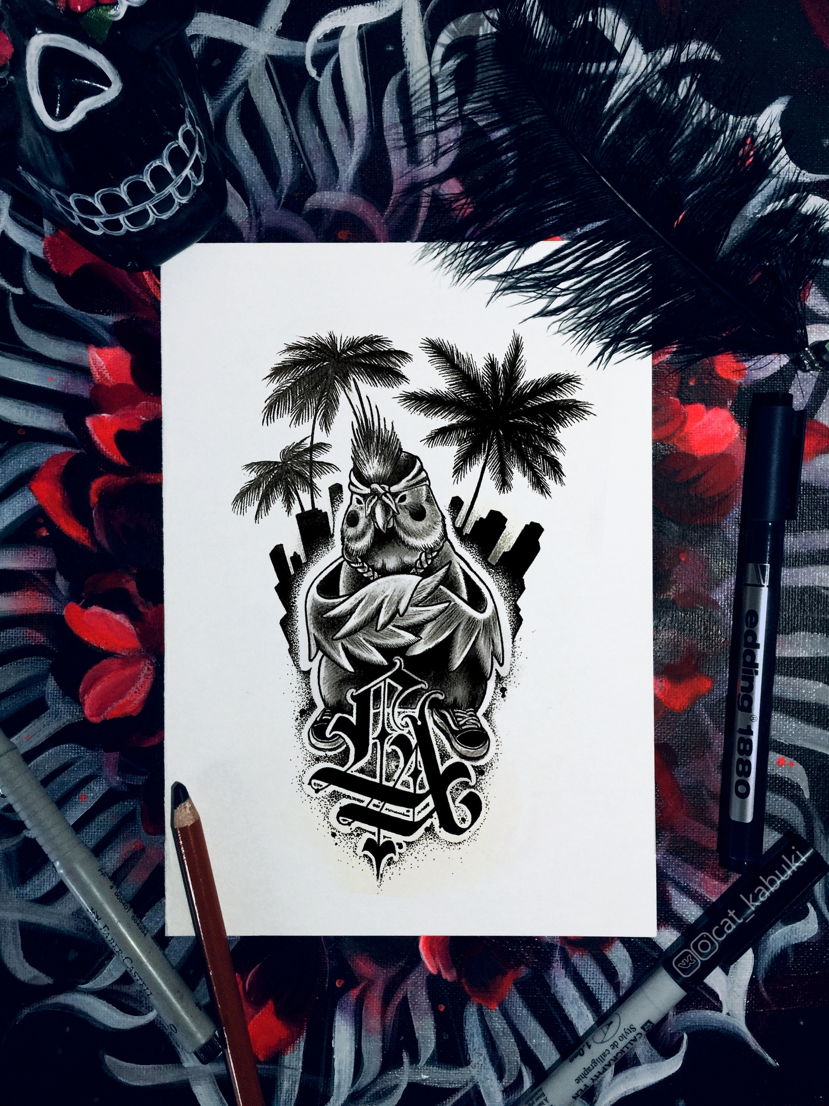 Свободный эскиз тату с птицей - вариант 7 (Анастасия Юсупова)