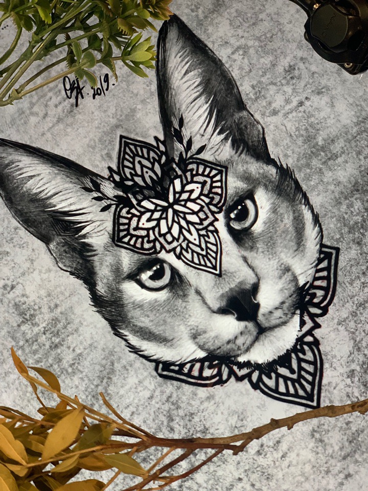 Свободный эскиз тату с животным в стиле Black&Grey