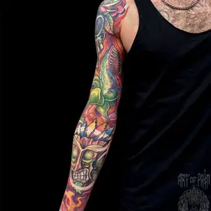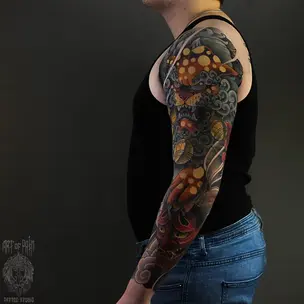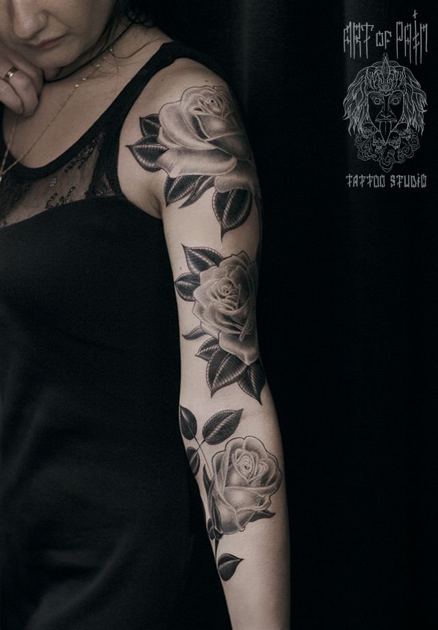 Татуировка женская олд скул рукав цветы 1000