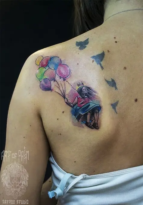 Татуировка женская акварель на лопатке девушка 1027