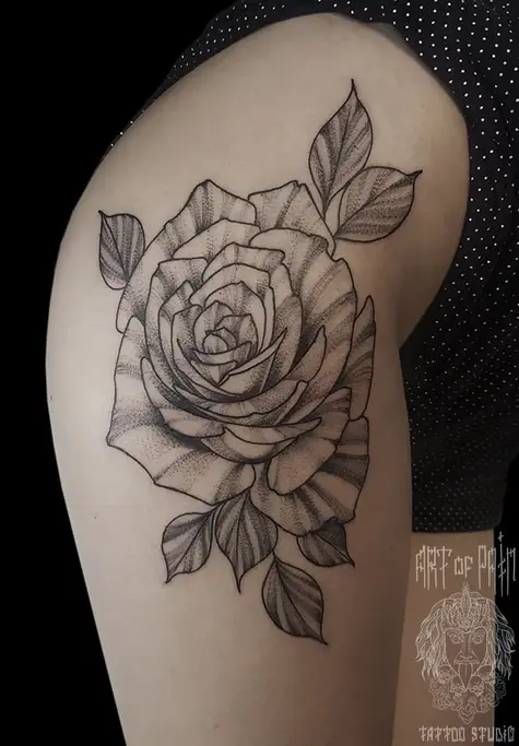 Татуировка женская графика на плече роза 1139