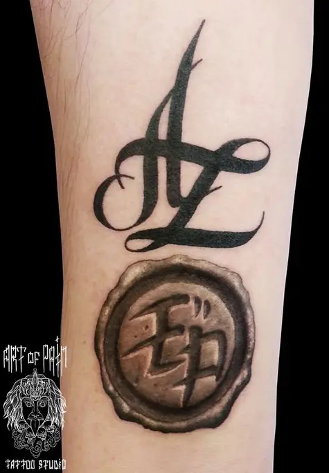 Татуировка женская каллиграфия на предплечье надпись и печать 1142