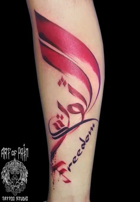 Татуировка женская каллиграфия на предплечье надпись Freedom 1145