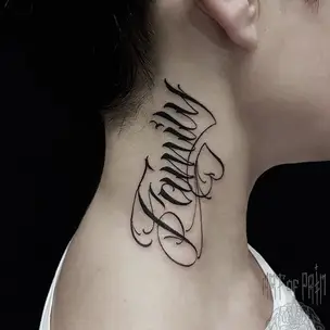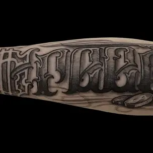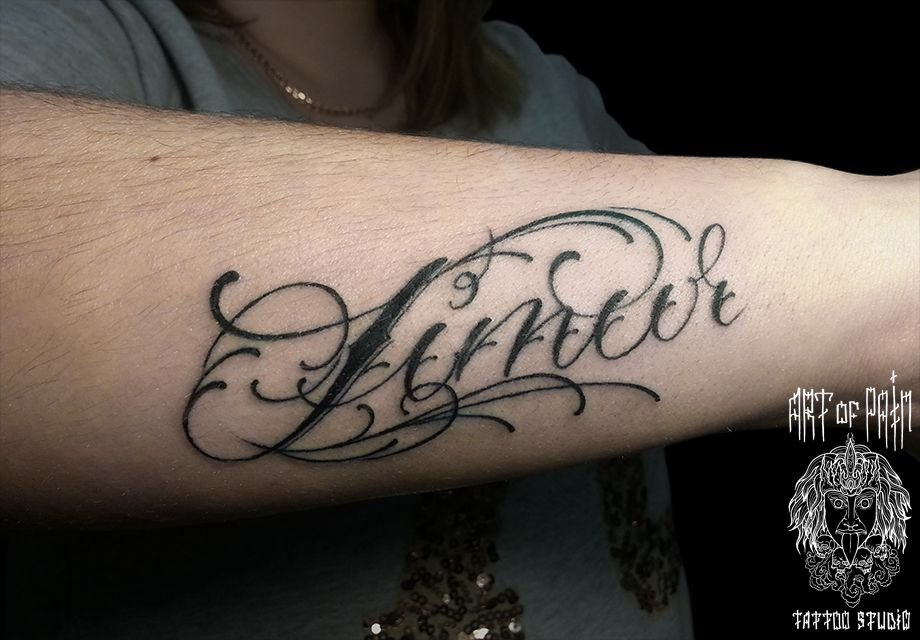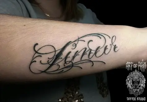 Татуировка женская каллиграфия на предплечье надпись с узором 1146