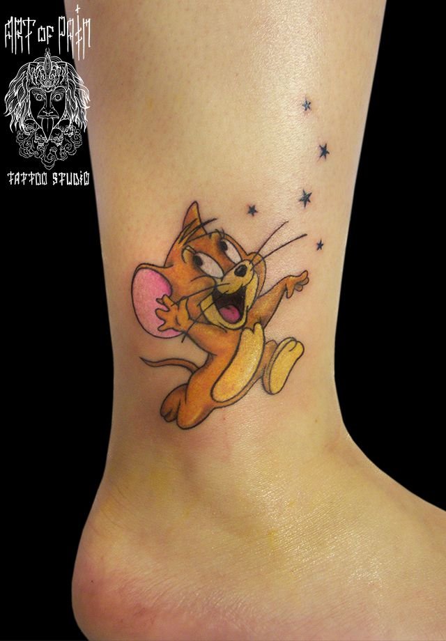 Татуировка женская олд скул на щиколотке мультфильмы 1163