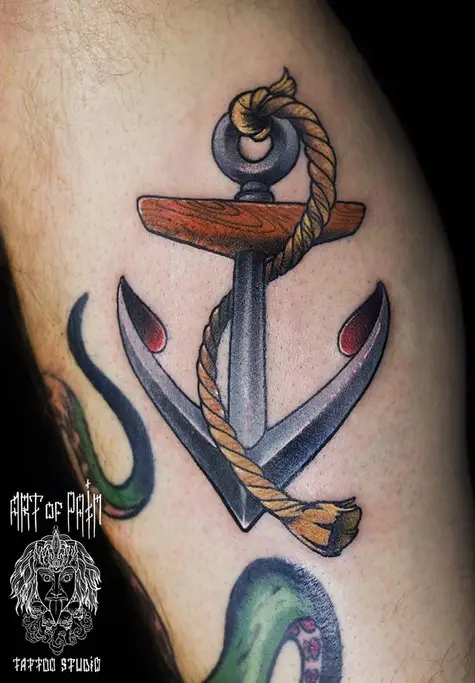 Татуировка женская олд скул на руке якорь 1165