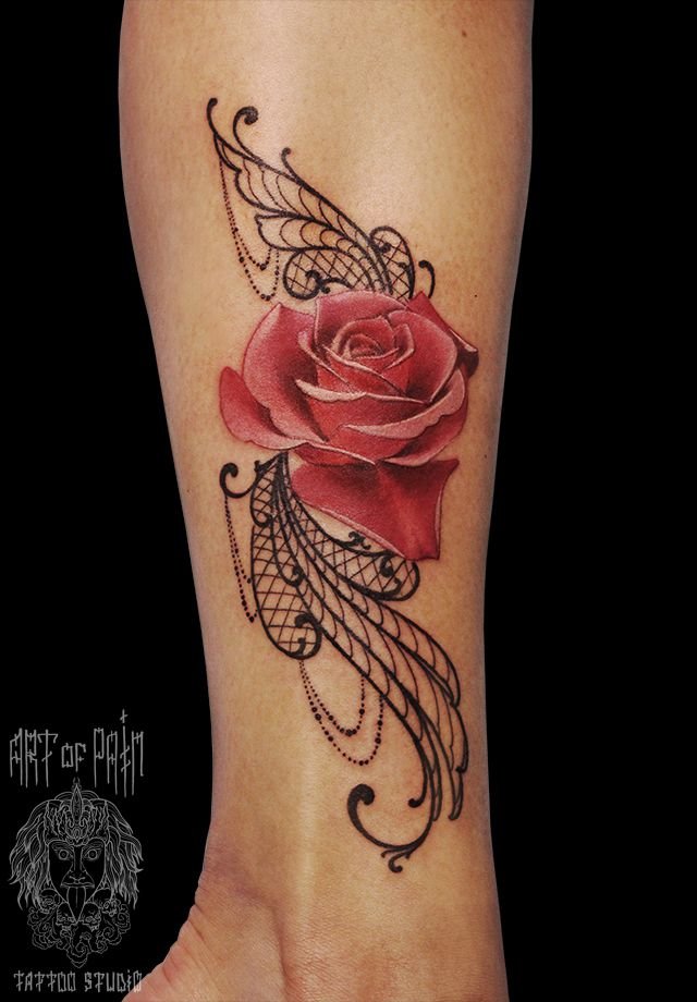 Татуировка женская реализм на икре роза 1189