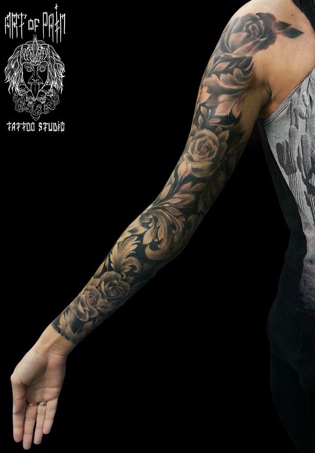 Татуировка женская чикано рукав розы 1211