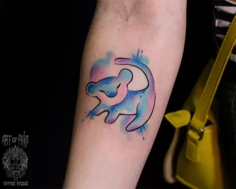 Татуировка женская акварель на предплечье львенок 1232