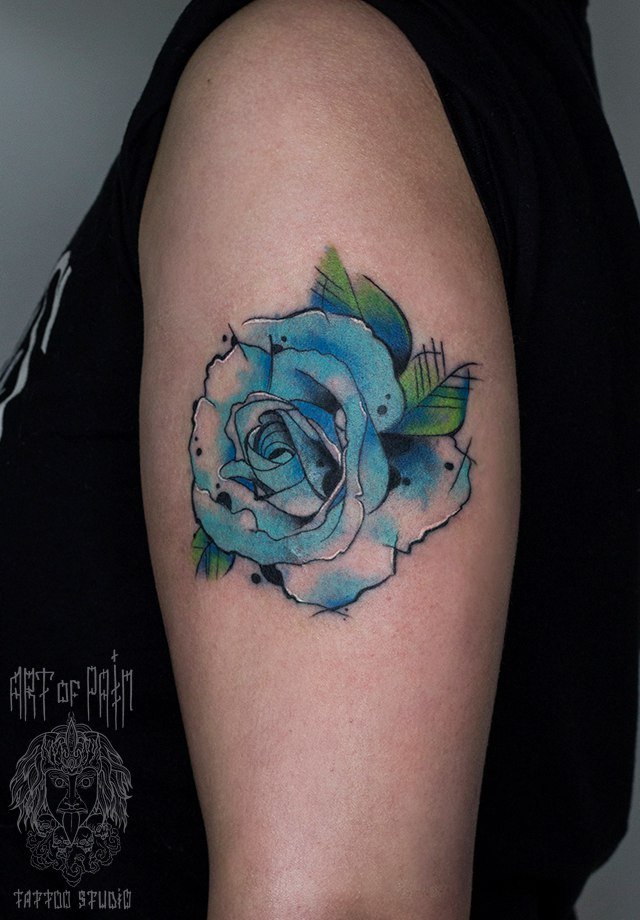 Татуировка женская акварель на плече роза 1236