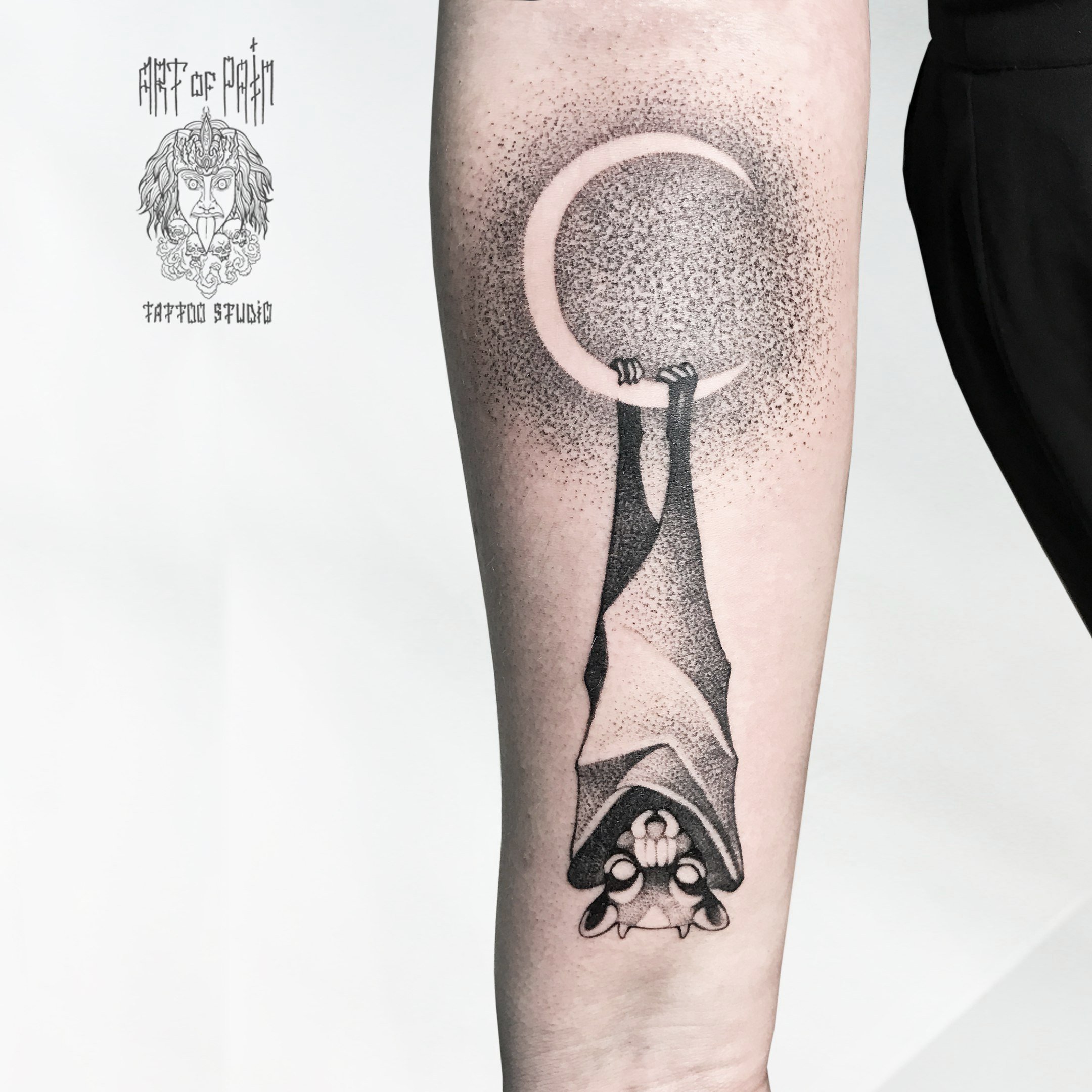 Татуировка женская дотворк предплечье летучая мышь 1290
