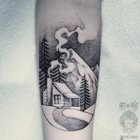 Татуировка женская дотворк предплечье пейзаж 1297