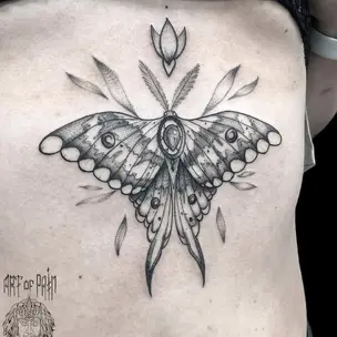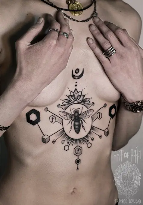 Татуировка женская графика на животе насекомые 1329