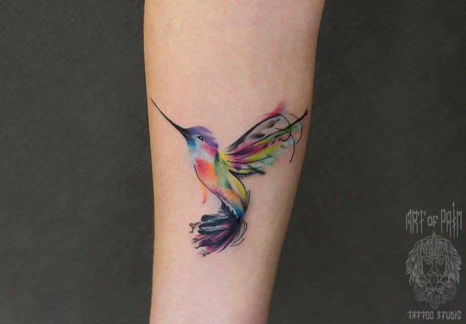 Татуировка женская акварель на предплечье колибри 1338