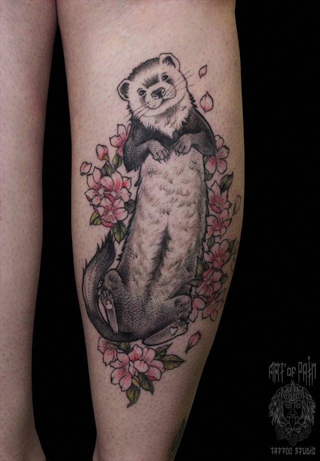 Татуировка женская графика на ноге хорек 1441