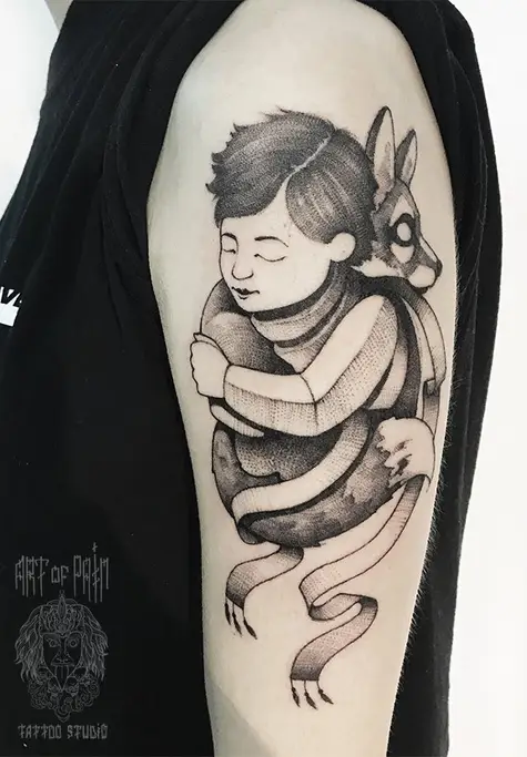 Татуировка женская дотворк на плече Маленький принц 1535