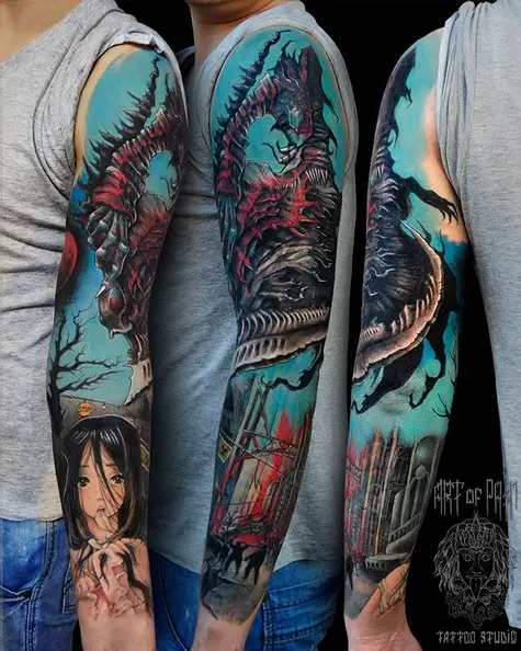 Татуировка женская нью-скул тату-рукав аниме 1564