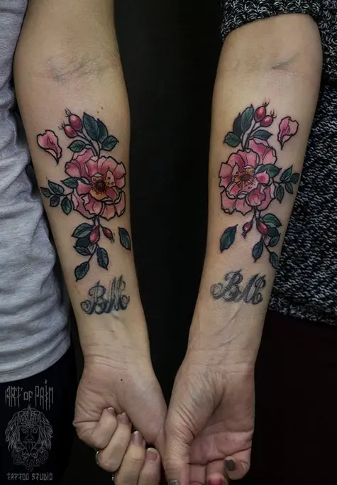 Татуировка женская нью-скул на предплечье шиповник 1605