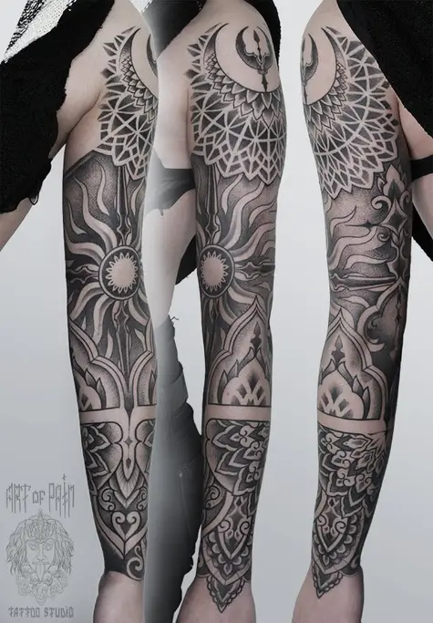 Татуировка женская дотворк тату-рукав орнамент 1614