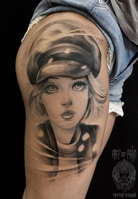 Татуировка женская black&grey на бедре анастасия (Слава Tech Lunatic) 1695
