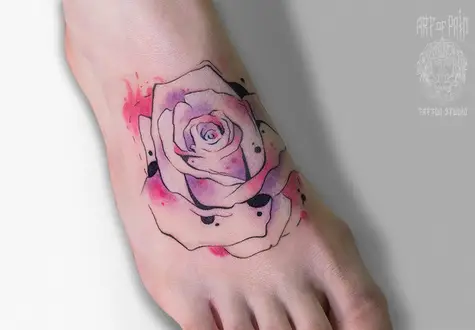татуировка женская акварель на стопе роза 1851