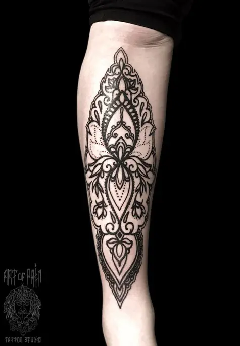 Татуировка женская орнаментал на голени узор 1915