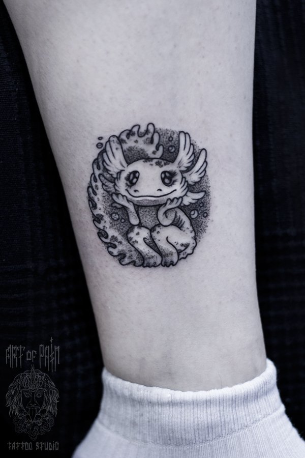 Татуировка женская дотворк на щиколотке аксолотль 1965