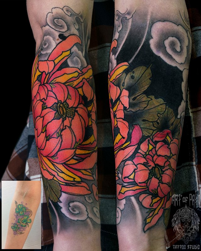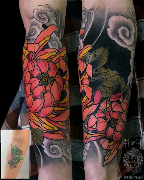Татуировка женская япония на предплечье хризантемы кавер 1994