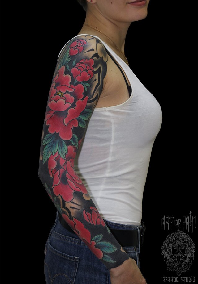 Татуировка женская япония тату-рукав пионы (Ольга Добрякова) 2095
